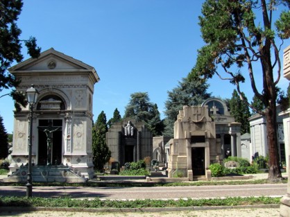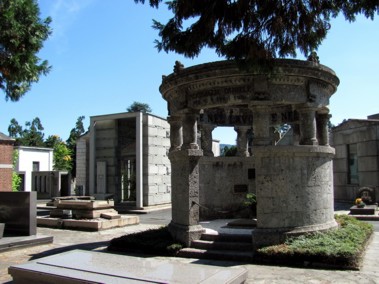 Noch jedes Jahr im Mai gibt es Prozessionen von Fußballanhängern den Berg hoch um hier am Denkmal Kränze und sonstigen Fußballkram niederzulegen. Ganz rum und vorne wieder auf dem Parkplatz habe ich dann als nächstes die Megaaussicht von hier oben genossen. Zum einen hatte man einen klasse Überblick über die Stadt. Zum anderen konnte man auch bis zu den Bergen schauen und noch den einen oder anderen verschneiten Gipfel erkennen. Lustig war, das beim Stadtüberblick der Turm von gestern (dieser Antonella) deutlich aus dem Stadtbild heraussticht. Das ist wirklich mit Abstand das höchste, was so in der Stadt rumsteht. Mit der Bahn gings dann wieder runter und mit dem Bus zurück. Auf dem Weg zurück in die Stadt bin ich noch beim Monumentalfriedhof ausgestiegen. Der hat mich aber nicht so ganz überzeugt. Kein Vergleich mit dem Friedhof z.B. in Mailand. Hier gabs zwar auch sehr viele Grabmäler, die einzelnen Bauten waren aber nicht so spektakulär.