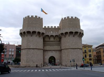 Heute gings erst recht spät los. So gegen 11 Uhr waren wir auf der Straße. Mit der UBahn gings zum Hauptbahnhof. Überhaupt : UBahn. Hat man drei UBahnpläne, dann steht in jedem garantiert ein anderer Plan drin. Anscheinend wird in Valencia viel und gerne das UBahnsystem umgebaut und erweitert. So haben wir in einem anderen Plan am zweiten noch festgestellt, das es in der Nähe noch eine andere Bahnstation gibt, die wir nehmen konnten. Die war in unserem Faltblatt vom ersten Tag noch garnicht drauf. Also, UBahn zum Bahnhof und von dort mal auf anderen Wegen wie gestern sozusagen links herum in den Altstadtkern hinein und quer durch das Viertel Carmen ( oder El Carmen ? weiss nicht mehr ) hindurch. Das sollte so etwas wie das Kneipenviertel mit vielen Bars und Resturants sein. Allerdings wars anscheinend auch ein kleinwenig schmuddeliger wie andere Ecken. Durch Carmen hindurch und am Instituto De Arte Moderno vorbei gings durchs Viertel. Und schon stand man wieder an einer fetten Straße mit ziemlich vielen Spuren. Da wir keine Lust hatten durch die Abgase weiterzulaufen, sind wir ein Stück weiter und in die Gärten im schon erwähnten Grüngürtel eingetaucht. Dort sind wir durch die kleine grüne Oase weitergegangen, bis wir am historischen Stadttor, am Torres de Serranos, rausgekommen sind. Ziemlich wuchtiges und großes Stadttor. Man hätte da auch raufgekonnt, aber irgendwie war da gerade geschlossen.