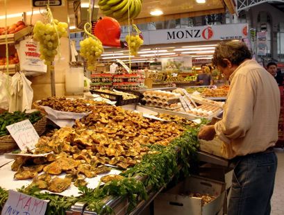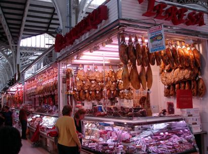 Ein Bier später haben wir uns zurück in die Stadt in Bewegung gesetzt. Wir wollten noch ein paar Sachen einkaufen. Wir sind zurück zum Bahnhof mit der UBahn und von dort zum Mercado Central. Dort haben wir dann noch Schinken und Chorizo-Würste gekauft. Einen kleinen Einkauf habe ich auch noch für ein paar Knabbereien gemacht. Da wir noch etwas Zeit hatten, sind wir noch zum anderen großen Markt der Stadt, dem Mercado de Colon gegangen. Dort ist jedoch nicht mehr jeden Tag Markt. Hier wurde vielmehr umgebaut und es gibt hier jetzt viele Restaurants und Cafes. Eine Etage im Untergrund gibts hier noch ein Kaufhaus, Plattenladen und noch ein paar Lebensmittelstände.