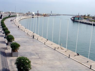Es gibt hier noch das "House of the americas cup", wo ein paar Displays die Geschickte des Cups darstellen. Auch nicht unendlich interessant. Am Wasser ein wenig rumgeschaut und fertig. Wir sind zurück und in der anderen Richtung am Wasser entlang zum "Veles E Ventes", einem Veranstaltungsgebäude des Americas Cup, gegangen. Hier sollten noch diverse Geschäfte und Bar sein. Aber irgendwie auch alles wegen akuter Vereinsamung geschlossen. Ich kann mir ja noch vorstellen, das während des Cups hier richtig was los war, aber jetzt ist diese ganze Gegend recht verlassen. Irgendwie gibts auch keinen Anreiz hier hin zu kommen. Von hier zum Hausstrand von Valencia sind er genau 100 Meter. Dann steht man am Meer. Es war nicht mehr wirklich Strandsaison, weshalb auch hier keiner unterwegs war. Wir sind noch ein wenig hier rumgelaufen, haben uns aber später dann mal in eine der vielen vielen Bars hier gesetzt. Essen gabs noch nix, war angeblich noch zu früh. Komisch nur, das am Nachbartisch die Leute später was zu futtern bekamen. Aber egal.