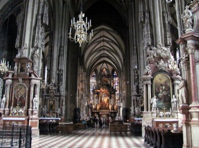 Oha. Heute stimmte das Wetter draußen leider mit der Wettervorhersage überein. Regen und Sturm. Ich dachte mir, das darf mich heute nicht aufhalten, also Augen zu und durch. Ich musste gestern Abend am Stadion meinen Schirm abgeben. Ich bin mir sicher, das man alles Mögliche da gestern mit reinschleppen durfte, nur keine Schirme. Deppen. Naja. Ohne Schirm war ich an der UBahnstation angekommen schon klitschnass. An der Station Oper habe ich mir erst mal einen neuen Schirm gekauft. Von der Oper gings zum Stephansdom. Man was für ein Mistwetter. Es war nicht nur am Regnen wie blöd, es stürmte auch aus allen Ecken, so das man Wasser abkriegte, egal wie man den Schirm hielt. Ich bin um den Dom einmal rumgegangen. Den Aufstieg auf den Turm habe ich dabei gefunden. Das machte allerdings heute sehr wenig Sinn. Der Himmel hing gefühlt an der Turmspitze fest, so das man garnix gesehen hätte.