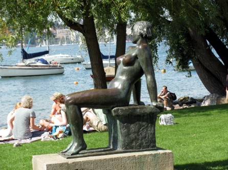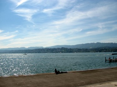 Ich habe es sehr gemütlich angehen lassen heute. Lange geschlafen und mich dann aus dem Hotel verabschiedet und mit der Tram über den Hauptbahnhof bis runter zum Bürkliplatz gefahren. Ich habe mir an den Bootsanlegern mal angeschaut, was du so für Touren anlegen. Da war ja von den normalen Personenfähren bis zum Ausflugsdampfer mit Dinnercruise auf dem See alles dabei. So ne kleine Böötchensfahrt hatte ich mir für später noch vorgenommen. Da unten am Bootsanleger gehts linker Hand über eine Brücke zur anderen Seeseite, rechter Hand kann man die rechte Seeseite umwandern. Direkt an das Areal der Bootsanleger schließt sich das sog. Arboretum an, was aber eigentlich auch nix anderes ist, wie ein Park. Warum das hier so nen Namen hat weiss ich auch nicht. Eben durch das Arboretum durch bin ich marschiert und weiter am Ufer entlang am Seebad vorbei bis hinunter zum Strandbad Mythenquai. Die Zücher scheinen rechte Wasserratten zu sein. Überall rund um den See waren irgendwelche Bäder, wo die Leute fröhlich im Wasser platschten.