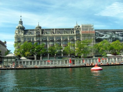 Hier unten vom Casino bin ich dann ganz gemütlich an der Seepromenade wieder hoch geschlendert. Mittlerweile war das Wetter wieder super schön geworden und in der Sonne war es richtig heiß. Überall in den Grünanlagen und am See waren Leute unterwegs, lagen rum oder machten sonstwas. Die Tretbootverleihe waren ausgelastet und die ganzen Cafe's entlang des Weges auch. Die Stimmung war irgendwie total ausgelassen. Scheinbar ist man hier gerne im Freien und genießt das auch. Irgendwo weiter oben nahe der Rathausbrücke habe ich mich dann auch mal niedergelassen und ausgiebig Pause gemacht. In der Sonne sitzen und Leute beobachten kann sehr interessant sein. Von hier war es dann auch nicht weit, bis zur Kronenhalle. Bei mir im Reiseführer stand, das man da unbedingt mal hin sollte, es würde sich lohnen. Ohne rechte Vorstellung was mich da erwartete bin ich also da hin und musste feststellen, das das ein Hotel oder Restaurant ist. Ich dachte zuerst das ich falsch wäre und eine Tür zu früh abgebogen sei. War ich aber nicht. Naja. Um es kurz zu machen, mir ist jetzt nicht eingeleuchtet, warum der Reiseführer das so angepriesen hat.