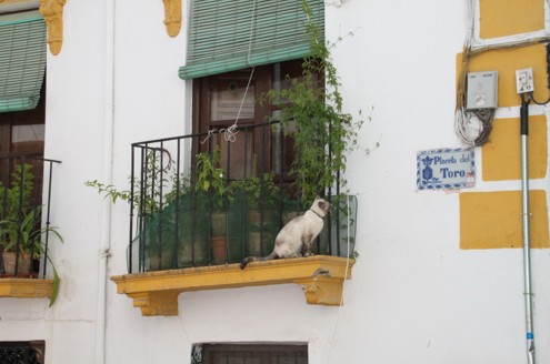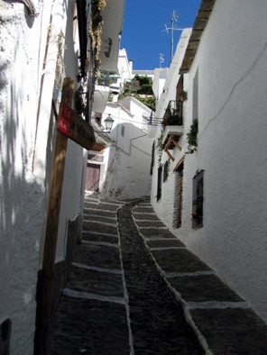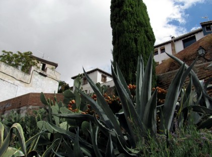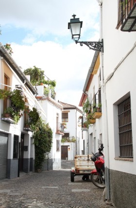 Das Albaicin ist der älteste "Ortsteil" von Granada. Es ist eigentlich ein Labyrinth von Gassen, Höfen, weiß gekalkten Mauern und kleinen Häuschen, hin und wieder aufgelockert durch einen Platz oder eine kleine Kirche mit Platz davor. Wandert man so durch die Gegend hier, kann man eigentlich nie auf geradem Weg von A nach B kommen. Man muss immer unglaublich viele Ecken im zick zack umkurven, so verwinkelt ist das hier. Vereinzelt gehen kleine Sträßchen hindurch, allermeist gibts aber nur steile Stiegen, krackelige Treppen oder krackelige Fußwege. Wie hier manche Leute irgendwelchen Kram zu ihrem Haus kriegen ist mir ein Rätsel. Beim Umziehen möchte ich hier auch keinem helfen. Zur Siesta Zeit kann es schonmal passieren, das es hier menschenleer ist. Wenn man dann mal ne Sackgase erwischt hat, gähnen einen nur ein paar schläfrige Katzen oder Hunde an. Hach wie idyllisch :-)