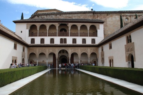 Da wir fast 2 Stunden Zeit hatten bis zu unserem "Time-Slot", haben wir es entsprechend gelassen angehen lassen. Wir sind ganz gemütlich in der Gegend rumgeschlendert und haben uns alles mal ganz in Ruhe angeschaut. Wir sind bis quasi zum anderen Ende gegangen und auf den Turm dort (Torre de la Vela) hochgestiegen. Von oben gibts eine sehr tolle Rundumsicht auf die ganze Umgebung. Was es da so alles noch gibt zum Anschauen, das sollte sich jeder mal selbst erarbeiten, das will ich hier nicht alles noch aufzählen. Da wir noch ein wenig Zeit zu überbrücken hatten haben uns noch auf dem Platz "de los Aljibes" ein wenig niedergelassen. Der Kiosk der auch tolles Bier zapft ist übrigens garnicht teuer. Dann ging es pünktlich zu unserem Timeslot zum Nasridenpalast. Ach HIER sind die ganzen Leute. Schon beim Anstellen für den Einlass war es Massenviehhaltung. Alle 15 Minuten werden da in Blockabfertigung ich denke mal hundert Leute durchgeschleust. Das hat zur Folge, das man eigentlich niemals alleine irgendwo ist. Passt man sich der Geschwindigkeit der anderen an, hat man die immer um sich. Ist man langsamer, wird man von der Gruppe später eingeholt, ist man schneller, holt man selbst die vorige Gruppe ein.