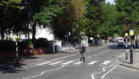Montag 4 Uhr früh. Aufstehen. Nach Kölle fahren und in den Flieger. Eigentlich könnte der Tag ja besser anfangen. Montag morgen 4 Uhr is schon reichlich früh. Naja. Flieger geht mit Germanwings um 7 Uhr recht pünktlich nach London Stansted. Mit der Bahn dann in die Stadt. Bis hier hin hatte ja schonmal alles geklappt. Mittlerweile doch später wie geplant gings erst mal nach Kauf der obligatorischen Travelcard in die Abbey Road. Ich hatte die Tage nochmal das Album der Beatles gesehen und mir vorgenommen das doch mal genauer vor Ort zu erkunden. Angekommen eine Paralellstraße von der Abbey Road entfernt bin ich natürlich erst mal in die falsche Richtung marschiert, so das ich die Abbey Road die falsche Richtung runtergestiefelt bin. Als die Gegend irgendwann dann verdächtig schäbig wurde bin ich rumgedreht und habe dann am gaaanz anderen Ende der Straße auch die legendären Studios und natürlich den Zebrastreifen davor gefunden. Ich hatte gelesen, das die Tage U2 hier im Studio irgendwas aufnehmen wollten. Da aber vor den Studios ziemliche Ruhe herrschte und auch nicht die besten Autos vor der Tür rumstanden, habe ich mich hier garnicht groß aufgehalten und bin weiter. Auf den Zebrastreifen vor der Türe konnte ich noch Zeuge werden, wie sich diverse Leute dort gegenseitig fotografiert haben. Siehe unten. Links original, rechts Fälschung :-)
