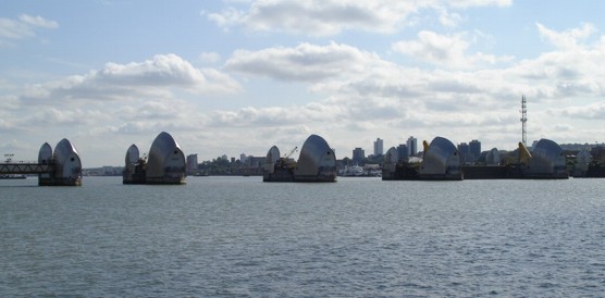Ich bin dann wieder zurück zur UBahn und mit der Jubilee Line eigentlich einmal ans andere Ende von London gefahren. ich wollte mir die Thames Barrier mal ansehen. Die Thames Barrier ist eine Art Staustufe, die hochgefahren werden kann, wenn London ein Hochwasser droht. Damit in der Stadt die Themse-nahen Gegenden nicht absaufen, kann der Pegel um ein paar Meter korrigiert werden. Wenn man irgendwann mal mit der Ubahn in Camden Town angekommen ist, gehts mit der DLR noch ein paar Stationen weiter. An der Station Pontoon Dock steht man auch schon mitten im Thames Barrier Park. Direkt an die Staustufe dran kann man nicht, hat aus dem netten Park aber gute Sicht darauf. Nebenbei gibts auf der Zugfahrt dorthin auch noch ein paar nette Blicke auf den vor sich hingammelnden Millennium Dome. Der Park war ziemlich einsam und verlassen. Mit anderen Worten : Hier war keine Sau. Außerdem lag hier ein penetranter Gestank nach Urinsteinen in der Luft. Ich hab lange überlegt, woran mich der "Duft" erinnert. Ich glaube Urinstein kommt der Sache am nahesten. Wüsste ja gerne mal woher das kam. Die eigentliche Barrier ist jetzt nicht wirklich spektakulär. Aber ganz nett anzusehen ist es allemal. Eines der Teilstücke der Barriere war sogar hochgezogen, so das man ein wenig vom Funktionsprinzip dieses Dings verstehen konnte.