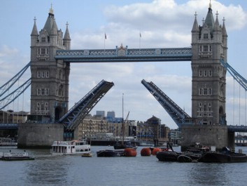 Nach ein paar Minuten rumgucken und Fotos machen habe ich mich auch wieder zur Bahn und zurück in die Stadt zum Tower begeben. Vom Tower aus über die Brücke auf die andere Seite und eine kleine Einkaufspassage angesteuert. Dort hab ich erst mal nen Kaffee eingeworfen. Danach wurde es Zeit für das "Brücke hochmachen". ich hatte mir aus dem Internet den "bridge lift schedule" besorgt und wusste, das um 13.30 Uhr die Brück hochgemacht wurde. Und so war es auch. So hab ich also auch mal die Tower Bridge mit hochgeklappter Straße gesehen. Darauf gabs dann erst mal ein Bier im nahen Pub ( bäh, Carlsberg ist echt ne Brühe ).