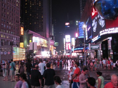 Als ich bei Times Square ausgestiegen bin, war schon nix mehr vom Regen zu sehen. Ich hab hier noch die obligatorischen Fotos von den Leuchtreklamen bei Nacht gemacht, im Hard Rock Cafe mein New York TShirt gekauft und hab mich zum Hotel aufgemacht. Auf dem Weg habe ich, ich glaube es ist auch in der 38. Straße, einen australischen Pub gefunden, den ich direkt mal geentert habe. Da gabs Fosters und andere Nettigkeiten. Der Barman hinter der Theke hat die ganze Zeit mit einem anderen Gast irgendwelche üblen Schnäpse gezischt. Ich glaube die hatten hinter beide jeweils 10 davon intus. Was dem Barkeeper wohlgemerkt nicht wirklich was ausgemacht hat. Der sah noch voll fit aus danach. So jetzt reichts aber für heute. Gute Nacht.