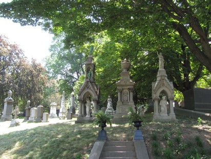 Das Gelände ist eine unendliche Berg- und Talbahn und ist ziemlich chaotisch zugestellt mit Grabmälern und Mausoleen. Es gibt auch einen Plan mit Routen zu den Gräbern der bekannten Persönlichkeiten und Mittwochs gibt es eine geführte Trolleytour durch das Gelände. Ich bin mal ein wenig rumgeschlendert. Hier kann man sehr schön spazieren gehen, bekommt aber aufgrund der schieren Größe nur ein Bruchteil des ganzen Geländes zu sehen. Leider musste ich eine komplette Abwesenheit von jeglichen Sitzmöglichkeiten und Ruhebänken feststellen. Schade. Mir taten die Quanten weh und ich hätte gerne mal ne Rast gemacht. So bin ich eigentlich schneller wieder gegangen wie ich vor hatte. Auf dem Rückweg per Bahn habe ich es geschafft irgendwo auf den blauen A/C/E Strang zu wechseln und bin zum Meetpacking District gefahren. Ich wollte mir mal die Highline ansehen.