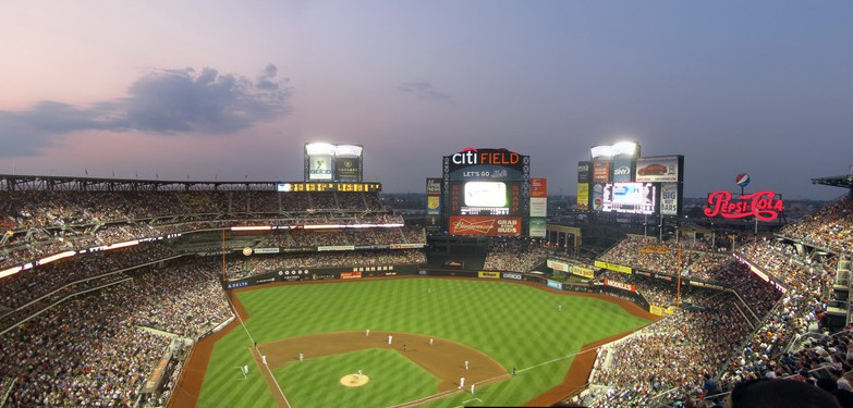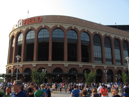 Um meine Hotelstory nicht zu sehr auszuwalzen. Ich hatte ein anderes Zimmer bekommen. Allerdings auf der gleichen Gebäudeseite nur 5 Stockwerke höher und auch nicht wirklich viel leiser. Ehrlicherweise hatte ich jetzt aber keinen Bock mehr auf beschweren. Waren ja nur noch zwei Nächte. Wird schon irgendwie gehen. Ihr Fett kriegen die schon weg durch meine Bewertungen in Onlineforen und Hotelbewertungsseiten. Das wird meine Rache sein. Da ich eh zum Times Square musste für eine Bahn nach Queens, habe ich dort bei der Heartland Brewery, genauer gesagt beim Heartland Brewery Chophouse, ein Steak (klasse !) und das ein oder andere Bierchen (lecker!) eingeworfen. Naja. Ein wenig teuer wars schon, aber auch gut. Jetzt war ich gestärkt für den letzten Programmpunkt des Tages : Baseball. Mit der Nummer 7 Express gings ganz easy nach Mets-Willets-Point, zum neuen Mets Stadion, dem Citi Field. Jetzt am Abend wars auch noch klasse Wetter, so das die Chancen heute mal ein Baseball Spiel zu sehen bei 100% standen :-) Meinen letzten Versuch mal ein Spiel zu sehen kann man hier nachlesen. Im Stadion ist mir dann eines sehr schnell klar geworden. Das ganze Ding ist eigentlich nur eine Hülle um die 1000 Fressbuden hier. Selten habe ich gesehen, das Leute so dermaßen ganze Arme voll Fresserei und Sauferei mit sich rumschleppten wie hier. Selbst auf den Rängen am Platz kam keine ohne 2 oder drei Teile Essen und Trinken in der Hand an. Und dabei war das hier im Stadion alles andere als günstig.