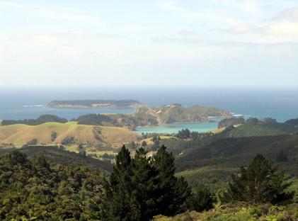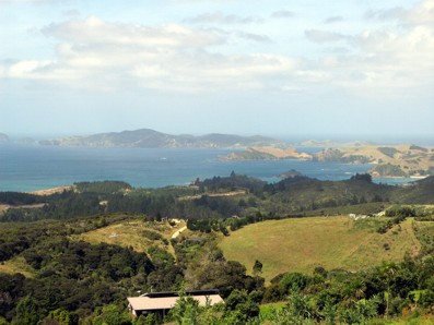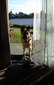 Von Pahia aus sind wir dann mit der Fähre nach Russel übergesetzt und haben erst mal die Suche nach einem Quartier für die nächsten beiden Nächte gestartet. Hm. Das war hier ganicht so leicht. Zum einen war hier im Ort wieder irgendein Fischwettbewerb und die Unterkünfte die noch frei waren waren dafür um so teurer. Irgendwann haben wir eine Frau an der Straße gefragt ob sie nicht einen Tipp hätte für ne Übernachtung. Diese hat uns dann den Berg hoch in die Wohngebiete über Russel zur Kororareka Lodge geschickt. Ein nettes Bed and Breakfast, welches sogar frei war und auch bezahlbar. Der Scheffe des Ladens, ein stämmiger Maori (mit stämmig meine ich, das er fast nicht durch die Tür gepasst hat) war echt in Ordnung. Er war bei der Fire Brigade, führte die Lodge und betrieb den örtlichen Taxidienst. Außerdem war er, wie wir später feststellten, mit jedem bestens bekannt. Ich glaube der kannte die ganze Welt. Als wir ausgeräumt hatten und uns ein wenig draußen in die Sonne gesetzt hatten kam er noch vorbei und hat sich zu uns gesetzt und wir haben erst mal ein Schwätzchen gehalten. Er hat uns ein paar Empfehlungen für den Ort gegeben und uns dann noch seinen Hund vorgestellt. Ein waschechter deutscher Schäferhund. Noch recht jung, aber schon ganz gut groß. Markenzeichen : immer einen zerkauten Ball im Maul und will immer spielen. Und prompt hatten wir auch unseren neuesten Freund für die nächsten Tage gefunden.