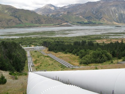Heute gings endlich so richtig los. Unsere Rundtour startete. Als Tagesziel war der Mount Cook, bzw. das kleine Kaff Twizel ganz in der Nähe eingeloggt. Zeitig los ging es und auf der 73 und später 72 aus Christchurch weg. Wir hatten uns entschlossen nicht an der Küste entlang sondern durchs Landesinnere zu fahren. Das müsste dann nämlich das Canterbury Hochland gewesen sein. Je weiter man Richtung Berge kam, desto höher und hügeliger wurde es. Auf dem Weg durchs Land habe ich mehr als einmal gedacht "Mann, voll das Auenland hier". Man kommt eigentlich dauernd durch endlose, grüne Graslandschaften, die mehr oder weniger dicht von Schafen bevölkert sind. Ein paar Hügel dazwischen, ein paar Flüsse. Dann wieder endlos lange Wiesen und viele viele Schafe. Es hatte durchaus etwas entspannendes und sehr ruhiges hier rumzufahren. Vor allem war es ein wenig weiter ins Land hinein dann auch soweit, das man sehr lange alleine auf der Straße unterwegs war und keine Menschenseele weit und breit sonst unterwegs schien. Wenn dann mal einer unterwegs war, dann war es ein Farmer mit seinem Pickup wo von der Ladefläche mindestens 3 Hunde ihren Kopf in den Fahrtwind hielten. In der Nähe des Ortes Methven, ich vermute mal es war ein Ort, denn viele der eingezeichneten Orte auf der Karte entpuppten sich bei genauen hinsehen oder durchfahren als besiedelte Kreuzungen, haben wir einen kleinen Abstecher gemacht. Wir haben einen kleinen Sidetrip zum Lake Coleridge gemacht. Am diesem See ist Neuseelands ältestes Wasserkraftwerk ... ähh ... eingebaut (von 1914).