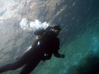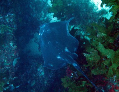 Ich habe also die nächste Stunde damit verbracht zu Schnorcheln während die anderen ihren ersten Tauchgang gemacht haben. Zurück aus dem Wasser ging es dann nach Aufsammeln der letzten Taucher weiter zum Stopp Nummer 2. Auch hier eine Art kleine Bucht, welche aus mehreren Inseln geformt wurde. In den Felsen rund herum waren mehrere Höhlen, in die man auch hineinschwimmen konnte. Hier hatte ich meinen Tauchgang. Der Kollege von den Dive Tutukaka - Jungs hat mir alles sehr gut erklärt und ist immer sehr nahe bei mir geblieben. Ich hatte ihm zwar gesagt, das ich schon zweimal auch im Rahmen eines solchen Introductional Dive getaucht bin, aber hat trotzdem vorbildlich aufgepasst. Dort wo wir jetzt getaucht waren, waren mehr größere Tier im Wasser. Uns ist auch noch ein Rochen vor der Nase hergeschwommen.