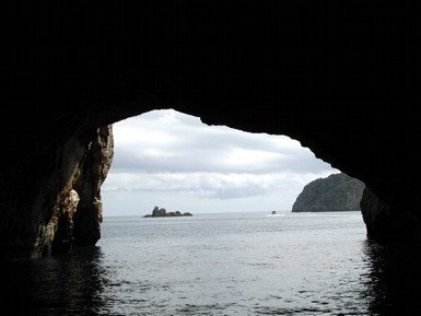 Leider verfliegt die Zeit immer rasant und man könnte auch endlos weiter durchs Wasser schweben. Zum Glück hatte mein Guide die Uhr im Auge und ca. 40 Minuten später waren wir wieder an der Luft. Nachdem auch hier die letzten Nachzügler aus dem Wasser gefischt worden waren haben wir noch eine große Runde durch die Inselgruppe gedreht. Der Skipper ist mit dem Schiff in riesige Höhlen reingefahren und durch riesige Torbögen hindurch. Klasse. Als wir am späten Nachmittag, ich glaube es waren so 17 Uhr in der Kante, wieder in Tutukaka waren war ich auch recht groggy. Irgendwie ist für mich so ein Tag auf dem Wasser mit Schnorcheln und Tauchen immer extra anstrengend. Aber ich muss nochmal betonen wie super organisiert und professionell die ganze Veranstaltung abgehalten wurde. Super. So muss es sein. Also ich kann "Dive! Tutukaka" nur empfehlen. Perfekt !