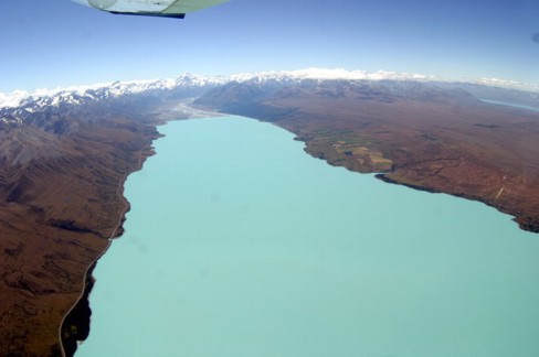 Unten angekommen nach den Glückwünschen für den ersten Sprung war ich doch echt froh es gemacht zu haben. Wirklich GEIL ! Zum "runterkommen" sind wir noch ein wenig geblieben und haben uns noch ein wenig unterhalten. Die Leutchen waren auch sehr locker drauf. Ein Blick auf die Uhr. Ach schon spät. Ein Blick auf den Parkplatz. Ach da wartet keiner mehr. Ok. Wir machen den Laden jetzt dicht und fahren zum nächsten See und legen uns in die Sonne. Da hatten die keinen Vertrag mit. Für uns wurde es jetzt auch Zeit. Denn es war schon nach 14 Uhr und wir hatten noch diverse Kilometer vor uns. Also zurück Richtung Twizel, an den Clay Cliffs vorbei und immer weiter durchs Land bis wir irgendwann den Küstenhighway erreicht haben. Dieser Abschnitt der Strecke war eigentlich immer geprägt von viel grün und sehr vielen und großen Seen. Eigentlich als Landschaft wirklich schön. Aber wenn man das dann ein paar Stunden am Stück sieht wirds langweilig. Wir sind zwischendurch noch an einem großen Staudamm eingehalten um uns die Beine zu vertreten. Hier konnte man auch wieder gut sehen, was für Wasserratten die Kiwis sind. So ziemlich jedes Auto hier hatte einen Bootsanhänger dabei und entlang des Sees waren unendlich viele Leute am Bootfahren, am Jetskifahren, schwimmen oder lagen einfach in der Sonne.