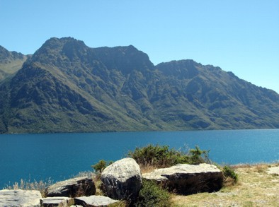 In Te Anau haben wir uns im kleinen Kino noch einen Film über das Fjordland angesehen. Der Film läuft dort dauernd und das Kino wurde extra dafür gebaut. Er zeigt noch schöne Luftaufnahmen der Berge ringsherum. Alles ist vom Helikopter aus aufgenommen. Der Film hat auch noch nen eigenen Namen, aber das war auch so ein komplizierter Name, das ich den sofort wieder vergessen habe. Das Kino kann aber nicht verfehlt werden, es ist direkt neben dem Supermarkt. Unser nächstes Ziel für den Tag war Wanaka. Wanaka eilt zusammen mit dem nahen Queenstown der Ruf vorraus das Aktivitäten- und Sport- und Bungee-Paradies zu sein. Da sollte sich doch ein wenig was unternehmen lassen. Von Te Anau aus kann man nicht ganz gerade hochfahren nach Queenstown, weil da ein paar Seen im Weg sind (Gebirge, Seen ...). Also sind wir die 94 nach Westen und dann die 6 nach Norden gefahren. Von der Fahrt hab ich nicht mehr so viele Details im Kopf, war nicht so richtig erlebnisreich. In Queenstown haben einen Stopp eingelegt und uns ganz flüchtig im Ort umgesehen. Einmal die Fußgängerzone zum Wasser runter und ein wenig rumgelaufen. Da wir ja Station in Wanaka hatten haben wir uns hier garnicht mehr lange aufgehalten um Touren oder ähnliches klarzumachen. Es machte mehr Sinn das dann auch direkt in Wanaka zu erledigen.