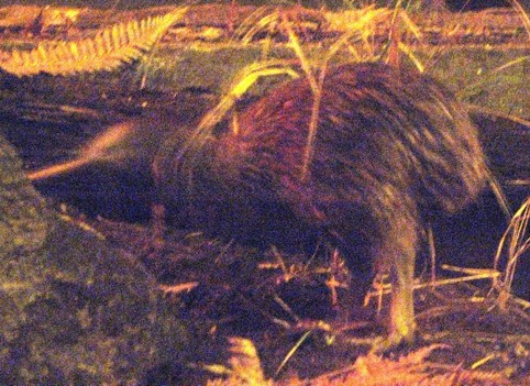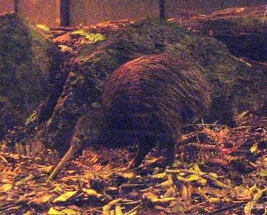 Gelandet sind wir beim Fat Dog. Das entpuppte sich eher als so ne Art Take Away Laden mit Sitzgelegenheit. Die Einrichtung sah aus wie vom Sperrmüll zusammengeklaut. So supertoll wars auch nicht. Habe definitiv schon besser gegessen. So um 8 sind wir also zurück zu den Kiwis. Sollten wir diesmal wirklich welche sehen ? Bis gegen 21 Uhr sind wir in der beginnenden Dunkelheit durch den Rest des Tierparks geschlendert. Viele Fische (dicke Dinger !), Enten, Keas und sonstiges Viehzeug machte sich für den Abend fertig. Das war auch mal recht nett anzusehen. Um Neun sind wir zu den Kiwis. Und tatsächlich! Die streiften dort durch die Büsche und haben mit ihren langen Stocherschnäbeln die Erde umgebuddelt. Man konnte wirklich ganz nah dran. Bei dem Einen konnte man nen Meter ran und sich ganz leise hinstellen und ihm einfach unendlich lange zuschauen. Klasse! Leider sind in der Dunkelheit die ganzen Fotos nicht wirklich was geworden. Blitzen durfte man nicht und in der Dunkelheit machen die Digicams mit dem Restlicht nicht wirklich vernünftige Fotos.
