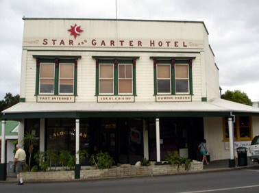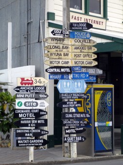 Irgendwann in Coromandel angekommen haben wir unser Auto irgendwo abgestellt und sind erst mal die Hauptstraße hoch und runter gegangen. Irgendwie ein wirklich hübscher Ort. Viele kleine und alte Häuschen, teilweise recht bunt bemalt. Eigentlich nur kleine Lädchen und ein paar Cafes und Bars. Am Rand des Ortes liegt die "Driving Creek Railway", eine Schmalspureisenbahn die Besucher durch die Gegend gondelt und dabei wunderschöne Landschaften durchfährt. Wir sind kurz noch hingefahren. Aber die Bahn fährt nur zu bestimmten Zeiten über den Tag verteilt. Die nächste Abfahrt sollte erst in anderthalb Stunden sein und so lange wollten wir nicht warten. Also sind wir erst mal ohne Bahnfahrt weiter.