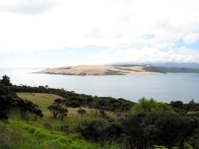 Ein Stück weiter die Straße hoch schon beim Hokianga Hafen liegt das kleine Kaff Omapere. Das hat eigentlich nichts besonderes, besitzt aber eine Tourist Info, ein ausgewachsenes I-Site. Dieses I-Site haben wir in letzter Not noch kurz vorm Ladenschluss geentert. Die beiden Damen dort waren wirklich überaus hilfsbereit und wir haben uns hier auf den letzten Drücker erst mal allem Nötigen eingedeckt, um die nächsten Tage über die Runden zu bringen. Zum ersten haben wir ne Übernachtung in einem Motel in Kaitaia gebucht. Das war preislich ganz OK und sah auf dem Bild ganz gut aus. Kaitaia deshalb, weil von dort aus viele der Touren zum Cape Reigna losgehen. Dazu muss ich ein wenig ausholen. Das Cape Reigna ist der oberste Zipfel der Nordinsel. Die Nordspitze sozusagen. Grundsätzlich kann man da auch selbst hinfahren ohne Probleme. Es gibt eine Inlandsroute und eine Küstenroute. Die Inlandsroute ist uninteressant, da sie wie der Name schon sagt im Land verläuft und man von da aus auch nur links und rechts auf die Hügel gucken kann. Die Küstenroute verläuft über den 90-Mile-Beach. Auch wieder ein laaanger und befahrbarer Strand. Dieser hat aber seine Tücken (zumindest in einem Teil). Im Reiseführer wurde ausdrücklich davor gewarnt da selbst zu fahren. Die Chance sein Auto irgendwo zu versenken sei sehr hoch, vor allen wenn man keine Ahnung von den Tiden hätte und zur falschen Zeit fahren würde. Außerdem würde einem auch keiner helfen, so das das Auto irgendwann im Wasser absaufen würde. Darauf hatten wir nun keine Lust. Wir waren zwar versucht, wollten uns aber dann doch ein paar Tage vor Ende der Reise keinen Ärger mehr einhandeln. Also haben wir (und jetzt komme ich wieder zum I-Site in Omapere zurück) bei den netten Ladies eine Bustour mit Cape Reigna Sand Safaris zum Cape Reigna gebucht. Eigentlich eine für uns absolute Nogo-Touristen-Tour. Aber in der Not frisst der Teufel fliegen. Und für einmal kann man mal über seinen eigenen Schatten springen. Ach so. Und teuer wars übrigens auch nicht. Als letztes haben uns die Damen noch eine Tour mit einem Segelboot von Russel aus durch die Bay Of Islands empfohlen. Ihre Empfehlung war ein Segelkatamaran, der von mehreren Frauen geführt wird, die Carino. Das sei wirklich gut und auch nicht teuer. Wir haben uns auf den Rat verlassen und diese Tour gebucht. Nachdem die Kreditkarten diese paar Dollar auch noch ausgespuckt hatten haben die auch direkt hinter uns zugeschlossen. Wie gesagt. Kurz vor Ladenschluss haben wir noch alles bekommen was für die nächsten Tage nötig war. Unsere einzige Aufgabe heute bestand jetzt darin noch in akzeptabler Zeit weiter hoch nach Kaitaia zu kommen. Von Rawene aus kann man mit der Autofähre übersetzen und sich so einen riesigen Umweg um den ganzen Hokianga Harbour ersparen. Ich kann es jetzt nicht mehr beschwören, aber ich glaube nach ein wenig rumgondeln auf kleineren Sträßchen sind wir irgendwann wieder auf dem Highway 1 gelandet und am Abend so gegen halb 8 in Kaitaia angekommen. Das Motel war schnell gefunden. Ein nettes Beispiel dafür, wie doch ein Bild und die Wirklichkeit auseinandergehen können. Es war jetzt nicht wirklich schlecht, aber der Flyer hatte doch einen anderen Eindruck erwirkt. Es wirkte halt alles ein wenig ältlich und verwohnt. Unser "Studio" entpuppte sich als zwei nebeneinander liegende Doppelzimmern mit Verbindungstür. Das war ganz gut. Jeder hatte ein Bad und zumindest für die nächsten beiden Tage entfiel die morgendliche Bad-Frage : Wer will zuerst ?