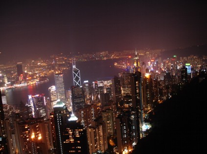 Danach sind wir mit der Fähre rüber, weil wir den Abend auf dem Peak ausklingen lassen wollten. Dort hatten wir letztes Mal schon gut gegessen und das wollten diesmal wiederholen. Also mit der spottbilligen Star Ferry rüber und drüben erst mal die Talstation der Peak-Tram gesucht. Wir sind letztes Mal ja mehr oder weniger zu Fuß hochgegangen und deshalb hatten wir keine Ahnung wo das denn sein könnte. Nach ein wenig rumsuchen konnten wir das dann aber doch finden und sind mit der Tram hoch. Oben in dem riesigen Bergterminal angekommen konnten wir feststellen, das sich zumindest hier oben recht viel getan hat. Die ganze Bergstation der Trambahn wurde zu einem fetten Einkaufscenter mit mindestens 6 Etagen ausgebaut. Erst mal haben wir fast nicht rausgefunden. Wir sind ganz nach oben um die nächtliche Skyline auch mal von dieser Seite zu sehen. Dabei mussten wir an etlichen Restaurants, einem Bubba Gumps Shrimps, Souvenirshops und einem Electronic Arts Computerspieleshop vorbei. Ein echtes Labyrinth da drin. Nach den obligatorischen Fotos von Hong Kong bei Nacht sind wir gegenüber ins Cafe Deco gegangen. Wir haben einen Tisch am Fenster mit Blick auf die Skyline bekommen und es uns bei ein paar Bier und echt gutem Essen gutgehen lassen. Nebenbei bemerkt war das Essen garnicht so teuer, wie die Lage da oben auf dem Peak es vermuten lassen würde. Zurück im Hotel dann hundemüde ins Bett. Leider war an Schlafen erst mal nicht zu denken, da das Hotel seit unserem letzten Besuch wohl unten einen Nachtclub eingebaut hatte. Und dieser hat uns bis seeeehr früh morgens mit einem schönen bum bum bum tschaka tschaka bum wach gehalten (da haben nur noch hin und wieder ein paar Loveparade-mäßige "Hyper Hyper" - Rufe gefehlt). Also diesem Umstand geschuldet kann ich das Majestic nicht mehr empfehlen. Also wenn man mit der Cathay Pacific nen Stopover macht, dann sollte man sich einen Gefallen tun und das Majestic nicht nehmen.