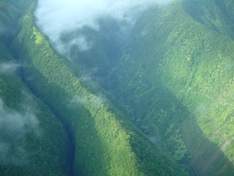 Verdammt früh ging's es heute Morgen los. Es waren nur noch Plätze im ersten Flieger frei gewesen. Wir hatten uns extra erkundigt, ob es morgens um 7 überhaupt schon hell ist. Es war hell aber die Wolken hingen noch auf Augenhöhe. Wir hatten schon die schlimmsten Befürchtungen für den Flug. Am Flughafen ganz im hintersten Bereich bei den Wohncontainern haben sich die einzelnen Rundflugfirmen angesiedelt. Dort haben wir das Büro der Big Island Air auch schnell gefunden. Ein wenig gewartet und noch eine kurze Sicherheitseinführung später ging es schon in die Luft. Der Pilot hat zuerst im Bereich vom Flughafen noch den normalen Funkverkehr auf den Kopfhörern gelassen aber später sehr schön alles erklärt was so unter uns zu sehen war.