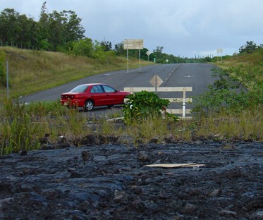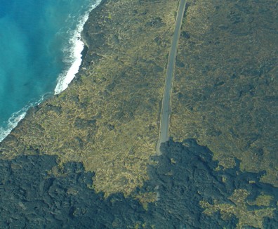 Weiter gings zum Kealakekua State Park, einer schönen Lavasteinbucht. Von hier aus kann man übrigens das Grabmal von Captain Cook auf der gegenüberliegenden Seite der Bucht sehen. Später sind wir abgebogen zum South Point. Nach langer Fahrt über teilweise kleine Landsträßchen kommt man zum äußersten und südlichsten Punkt der USA. Für Sammler von geografischen Extrempunkten ein Fest. Ansonsten eher unspektakulär, außer das der Punkt an ziemlich hohen und senkrecht steilen Klippen liegt und ansonsten mitten in der schönsten hawaiischen Einöde ist. Zurück auf der Hauptstraße kommt man geradewegs auf den Volcanoe National Park zu. Da wir hier aber noch einen extra Aufenthalt hatten haben wir den Park sozusagen links liegen gelassen und uns schnurstracks auf die andere Seite der Insel begeben. Und prompt wurden wir auch schon vom ersten Regen begrüßt. Wir sind an Hilo vorbei quasi auf die andere Seite des Nationalparks gefahren. Eigentlich konnte man früher auch mal gerade durch den Park nach Hilo fahren, diese Chain Of Craters Road wurde aber schon vor Jahren durch einen Vulkanausbruch und einem großen Lavastrom zerstört. Die Stelle im Park wo die Lava über die Straße geflossen ist, ist eine große Attraktion. Wir wollten uns aber die andere Seite ansehen.