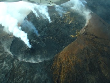 Hin und wieder hat er ein paar Kuriositäten und Anekdoten mit eingebracht. Schon alleine von der Moderation her war der Flug voll gelungen. Grundsätzlich kann man sagen das Big Island zwei grundverschiedene Seiten hat. Eine trockene Seite mit Kona und eine nasse Seite mit Hilo. Unsere trockene Seite bekommt im Jahr ein paar Millimeter Regen ab und in Hilo scheint es das ganze Jahr zu regnen. So extrem sind die Unterschiede auf den Inseln. Aus dem Flugzeug sieht man auch ganz genau wo man sich gerade befindet. Die trockene Kona-Seite hat seeeehr viel brachliegendes und von riesigen Lavaströmen zerstörtes Gelände, die nasse Hilo-Seite dafür unendlich grüne Regenwälder. Wir haben auch einen Teil des Volcano Nationalparks überflogen. Außer einem kleinen Mini-Lavapunkt und viel Rauch aber nichts spektakuläres gesehen. Ok, die Aussicht an sich war schon spektakulär genug. Einmal aus der Luft in den Krater eines riesigen Vulkanes reinzuschauen hat schon was für sich.