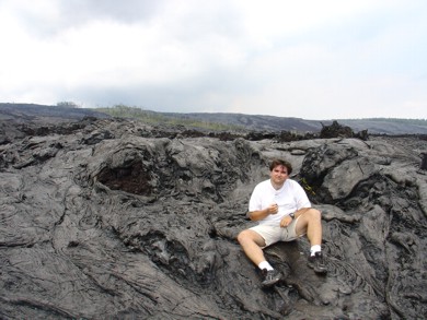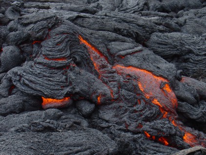 Und dann haben wir es gesehen. An einer Ecke an einem Hang klumpte zähflüssige Lava heraus. Immer wieder wurde irgendwo an dem Hang ein Punkt glutrot und kurz darauf blubbte eine Zunge Lava heraus. An einer Ecke war eine ziemlich ergiebige Quelle, die nach einer Dreiviertelstunde schon den Hang um ein gutes Stück weiter ausgebaut hatte. Nach einer Stunde im Angesicht des flüssigen Steins und ein paar ernsthaften, physikalischen Experimenten (was passiert wenn ich Wasser draufschütte, was passiert, wenn ich nen Stock reinstecke, was passiert, wenn ich nen Stein draufwerfe und wie nah kann man überhaupt ran ?) haben wir uns auf den Rückweg gemacht. Zurück gings deutlich schneller. Ich glaube ungefähr 2 Stunden. Irgendwann so gegen 17 Uhr waren wir wieder unten. Nicht sehr viel später fing es schon an zu dämmern, viel länger hätte es also nicht dauern dürfen. Zurück an der Rangerstation wusste man schon, wo wir herkamen. Wir waren durchs Fernglas beobachtet worden :-) Ein paar Unentschlossene, die sich die gleichen Gedanken machten wie wir ("Lohnt es sich denn überhaupt ?") wurden von uns noch bekehrt, dann ging's aber wieder zurück Richtung Volcano House. Der Rest des Abends ist schnell erzählt. Kurzer Abstecher zur Thurston Lava Tube (Na ja. Ein Loch im Berg wo mal Lava durchgeflossen ist) und noch schnell ins Volcano Village noch was zu trinken gekauft. Ein wenig ausgeruht und dann im Volcano House den Abend bei einem tollen Steak beendet. Fazit des Tages : Mega Anstrengung aber belohnt durch einen nicht alltäglichen Anblick. Flüssige Lava. Sowas hat man nicht alle Tage. Und der Gedanke war doch richtig. Wenn man einmal hier ist, dann muss man das auch sehen !