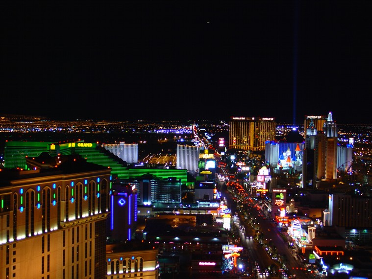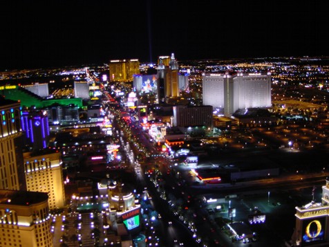 Nach dieser wirklich tollen und herausragenden Show waren wieder Nightshots am beleuchteten Strip auf dem Weg zum Circus Circus auf dem Programm. Vor dem Bellagio gibt es nächtlich alle paar Minuten Wasserspiele zu bewundern. Wir haben es einmal von unten gesehen und sind danach auf den Eiffelturm raufgefahren. Von oben lassen sich zwar die Formen besser erkennen, aber es ist meiner Meinung nach nicht so spektakulär. Spektakulär war allerdings der Blick über den nächtlichen Strip sowie den Rest von Las Vegas von hier oben.