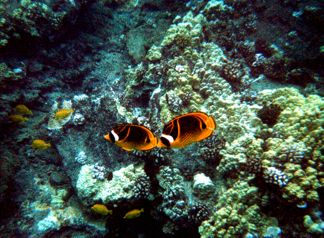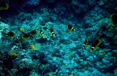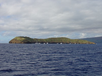 Vom Hafen aus ging es direkt nach Molokini. Schon vom weiten war die sichelförmige Insel zu erkennen. Später konnte man auch die ganzen Schiffe sehen, die schon da waren. Jedes davon hatte schon Schnorchler ausgeworfen. Jedes Boot hat aber einen eigenen Sektor, so das man sich nicht mit den anderen in die Quere kam. Es ist auch genug Platz. Der Seegang war nicht unbedingt ideal fürs Schnorcheln. Es war recht wellig. Nachdem ich mir aber so ne Art Schwimmbrett geholt hatte, hielt sich die Salzwasseraufnahme durch den Strohhalm (respektive Schnorchel) aber in Grenzen. Das Schnorchelterrain war ganz OK. Halt wie ein großes Riff. Zu den Felswänden der Insel hin sammelten sich auch viele Fische. Es waren jetzt nicht so sehr viele farbenprächtige Exemplare. Aber trotzdem recht sehenswert. Halt mal was anderes. Man darf es natürlich nicht mit Karibik oder Great Barrier Reef vergleichen. Das sind ja auch ganz andere Klimazonen. Also für diese Pazifikregion gab's schon genug Fische (auch recht große Exemplare) zu sehen.