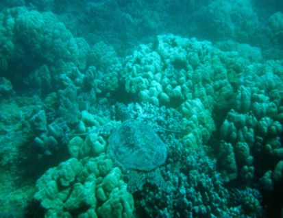 Nach diesem ersten Wasserausflug gab's an Bord ein gutes Essen. Alles sogar frisch gegrillt. So ein riesiger BBQ-Grill auf dem Boot hat schon was. Nach dem Essen ging es zurück zur Westseite der Insel, wo wir noch mal Halt gemacht haben. Wie diese Ecke jetzt genau hieß weiß ich nicht mehr. Es war aber in Sichtweite der Küste auf der Westseite der Insel. Warum wir hier gestoppt haben hatte auch einen Grund : Meeresschildkröten.