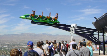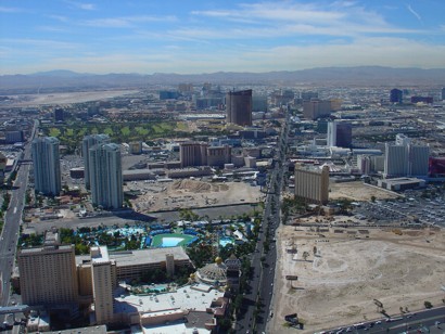 Am späten Morgen / frühen Mittag sind wir noch mal hoch auf den Turm. Jetzt konnte man Las Vegas auch mal bei Licht besehen. Hm, irgendwie wirkt der Blick im Dunklen mit allen Lichtern viel mehr. Der Anblick des "hellen" Las Vegas war überraschend unspektakulär. Nach ein paar Fotos haben wir noch im Casino ein wenig gefrühstückt und ein Käffchen eingeworfen. Bei der Gelegenheit habe ich noch alle verbleibenden Münzen in diverse Automaten versenkt. Ohne Ergebnis.
