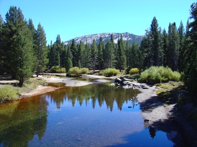 Für den Rückweg hatten wir den Weg über El Portal gewählt, sozusagen einer der Westausgänge. Im Park und auch am Rand, dort in El Portal gibt es ein paar Lodges. Wir haben dort gefragt und uns aufgrund der Preise (alles 120 Dollar aufwärts ohne Grenze nach oben) schnell davon gemacht um den nächsten Ort zu erreichen. Die Fahrt war wieder ziemlich eintönig und ich dachte schon uns würde das Schicksal der letzten beiden Abende ereilen. Aber nein. Der nächste Ort, Mariposa, war dann doch einigermaßen schnell erreicht. Nur, und das war mal was neues, der komplette Ort war total ausgebucht. In diesem Ort gab es bestimmt 10 bis 15 Hotels und Motels. Aber es gab nicht auch nur ein einziges freies Bett. Unglaublich. Irgendwie hatte ich schon vor meinem geistigen Auge ein Zimmer für 120 Dollar im Park vor Augen. Auf dem Rückweg zum Park (wirklich die letzte Möglichkeit. Weit und breit gab es in der Umgebung keinen anderen Ort mehr) haben wir dann noch versteckt abseits der Straße ein Motel gefunden, das Meadow Ridge Motel in Meadow Ridge. Ob das Motel selbst jetzt der Ort Meadow Ridge war, oder sonst irgendwo noch ein paar Häuser im Wald waren, konnten wir nicht mehr klären. Billig war das Ding nicht, mit etwas über 60 Dollar aber mindestens die Hälfte billiger als alles im Park. Ach ja, nach Einchecken hat uns der alte Chinese, der den Laden dort schmiss, noch auf den Weg gegeben bitte das Wasser aus dem Hahn nicht zu trinken. Da wäre irgendwas drin, was nicht so bekömmlich sei. Zum Waschen sei es gut, aber bitte nicht trinken. Hmmmmmm.