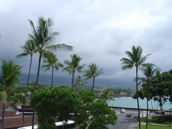 Es war unglaublich heiß. Nachdem in San Francisco eher bedecktes, windiges und kühleres Wetter vorherrschte, waren wir hier wieder endlich in den Sommer gekommen. Bis zum Büro von Alamo hab ich's noch geschafft, dort habe ich sofort wieder auf Sommerklamotten umgeschaltet. Nach einigermaßen unkomplizierter Aufnahme des Wagens (oh mein Gott, warum mussten wir denn Economy nehmen) sind wir mit unserem japanischen Miniautochen nach Kona geschaukelt. Der Weg vom Flughafen in den Ort geht vorbei an fast unendlichen schwarzen Lavafeldern. Sehr viel sehr unfruchtbare und zerstörte Landschaft.