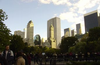 Wir haben nur schnell unser Gepäck ins Zimmer geschmissen und sind wieder zurück auf die Straße. Denn : Wir durften keine Minute versäumen. Es war gutes Wetter. Sonne ! Wir hatten ja garnicht damit gerechnet, nochmal irgendwann Sonne in New York zu sehen. Also haben wir uns aufgemacht und sind Richtung Central Park aufgebrochen. Die ganzen Hochhäuser um uns herum und am Rand vom Central Park in der Sonne sahen wirklich um einiges besser aus als im Nebel. Wir sind dann gemütlich im Central Park umhergeschlendert und haben alles Sehenswerte abgeklappert. Am Eislauf ... ääh ... Geläuf war ziemlich viel Betrieb. Alle waren ganz heiß drauf, ne Runde auf dem Eis zu drehen. Weiter die Mall hinauf und an den riesigen Wiesen entlang bekommt man schon einen guten Eindruck davon, wie groß der Park wirklich ist. Unser Weg ging einmal quer durch den Park über die Mall, am See vorbei, entlang dem Obelisken und dann zum MoMa. Das Museum of Modern Art haben wir aber nur äußerlich begutachtet, keiner von uns hatte Lust auf eine innerliche Untersuchung.