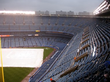 Nächster Tagesordnungspunkt für heute : Baseball. Und zwar ein Stadtderby. Die Yankees gegen die Mets. Die Tickets hatte ich übers Internet bei einer Art Fan-Ticket-Tauschbörse gekauft, weil das Spiel bei Ticketmaster offiziell ausverkauft war. Wir sind also so gegen 18 Uhr los und haben uns in die UBahn in Richtung Bronx begeben. Also wenn man unsere UBahn-Kilometer heute zählt, da würde schon echt was zusammenkommen. So langsam hatte ich auf Bahnfahren auch keinen Bock mehr. Am Stadion war auch auf der Straße schon entsprechend Betrieb. Wir haben uns (da immer noch Regen) aber zügig ins Stadion begeben. Nach ein wenig suchen, haben wir auch verstanden wie das mit den Aufgängen und Treppen da im Stadion funktioniert. Unsere Plätze waren schnell gefunden. Nur leider war im Stadion noch so gut wie nix los. Irgendwie standen entweder alle noch draußen auf der Straße oder am Bierstand. Das Spiel sollte um 19 Uhr anfangen. Um kurz vor 19 Uhr war immer noch keine Sau im Stadion. Die paar Leutchen die da waren, verloren sich alle in dem großen Rund. Ach so. Natürlich regnete es immer noch. Nun, was soll ich sagen. Ich mache es kurz. Um ca. 10 nach 7 kam dann eine Durchsage, das das Spiel aufgrund der Wetterbedingungen abgesagt sei. Es täte ihnen leid, aber heute gäbe es kein Spiel, man solle doch bitte nach Hause gehen. NA TOLL !!! Es hatte den ganzen Tag am Stück geregnet und denen fällt das um kurz nach 19 Uhr auf ? Also das finde ich echt einen Witz. So langsam wurde dann auch klar, warum bis kurz vor eigentlichem Spielbeginn kein Mensch im Stadion war. Die hatten sich das wohl alle schon gedacht. Ich wüsste ja mal gerne, ob generell nicht gespielt wird bei Regen. Aber das kann ich mir fast garnicht vorstellen. Bei dem New Yorker Wetter würden die ja keine Saison fertiggespielt bekommen. Nun ja. Also Geld zurück ist nicht. Man kann nur für ein anderes Spiel der Saison die Tickets umtauschen.