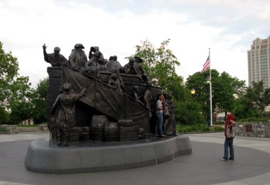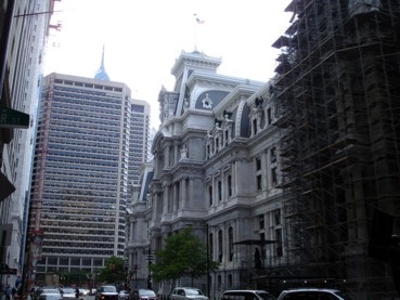 Da Philadelphia nur als Übernachtungsstopp eingeplant war, hatten wir unser Hotel auch nicht im Zentrum genommen, sondern waren etwas billiger in der Nähe des Flughafens untergekommen. Ein Courtyard Marriot, auch über Priceline gebucht. Hier zeigte man sich leider etwas unflexibel bei der Zimmerwahl. Der Wunsch nach zwei Betten wurde mit Verweis auf die Priceline Buchung und der Bemerkung das das alles fix sei und man da nichts ändern könnte glattweg abgelehnt. Wir hatten aber ne Schlafcouch im Zimmer, so das sich das Problem auch gleich wieder gelöst hat. Wir haben uns dann am späten Nachmittag (so gegen 18 Uhr) vom Hotel Shuttle zur nächsten Bahnstation bringen lassen. Mit dem Zug gings dann ins Zentrum. Bei der Haltestelle Convention Center sind wir raus und von dort ein wenig rumgelaufen. Die Gegend hier war nicht sonderlich spektakulär. Normale Stadt eben. Ein paar ältere und prunkvollere Häuser zwischendrin, ein Hard Rock Cafe und ein paar alte und nett aussehende Kneipen, aber sonst nix besonderes. Wir sind deshalb auch weiter in Richtung des "historischen Teiles" von Philadelphia, also da wo die Freiheitsglocke und die Independence Hall und so sind.