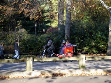 Irgendwann am Hotel habe ich nochmals festgestellt, das es vom Flughafen in die Stadt doch unglaublich lange dauert. Die Zeit darf man nicht unterschätzen. Ich glaube es war mittlerweile 13 Uhr und im Hotel wars Zimmer noch nicht fertig. So hab ich das Gepäck untergestellt und bin direkt zum Madison Square Garden gegangen, weil ich die Karten für heute und morgen noch am Will Call Schalter abholen musste. Eigentlich hatte ich ja gedacht, das Hotel wäre nah am Garden dran. Aber nix war. Ich musste doch tatsächlich noch ca. 10 Straßen rauf und 3 Avenues quer gehen, bis ich am Garden war. Bei Macys bin ich dabei auch vorbeigekommen. War überall ein Höllenbetrieb, so das ich den Besuch erst mal verschoben habe. Als ich die Karten hatte, bin ich beim Garden direkt in die Ubahn um hoch zum Central Park zu fahren. Leider war an diesem Wochenende überall Baustelle. Einzelne Linien fuhren garnicht und die 1,2,3 Trains hielten auch nur alle paar Haltestellen mal. Zumindest waren die Gleisänderungen vernünftig ausgeschildert und es standen auch immer genug „Offizielle“ rum, die man fragen konnte. Also zumindest organisiert waren diese Baumaßnahmen recht gut. Da die Bahn am Columbus Circle nicht hielt, bin ich an der nächsten raus und so ungefähr auf der Hälfte vom Central Park rausgekommen. Den Central Park geentert hab ich dann auf der Höhe von John-Lennon-Imagine-Denkmal. Der Vorteil vom Wochenende im Park ist ja, das dann autofrei ist. Man konnte ganz unbeschwert da auch über die Straßen marschieren. Die musste man nur mit den ganzen Pferdefuhrwerken, Radfahren und Skatern teilen.