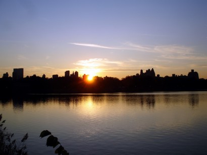 Die aktuelle Ausstellung widmete sich Kandinski. Man bekommt beim Ticketkauf auch einen Audio-Guide, der einem an definierten Stellen dann genau erklärt, was man da dann so sieht. Nun …. Irgendwie bin ich für sowas nicht so wirklich empfänglich. Wenn ich vor den Bildern stand hab ich die Botschaft nicht wirklich gesehen. Auch wenn mir der Audio Guide dann erklärte „Der Bogenschütze oben links zielt auf die geometrischen Formen unten und das symbolisiert den ……“ hab ichs immer noch nicht gerafft. Naja. Man kann nicht alles haben. Alles in allem hat das ganze „Runterwandeln“ noch recht viel Zeit gekostet und ich stand so gegen viertel vor 6 wieder auf der Straße. Ich hab mich dann noch kurz auf die andere Straßenseite begeben und bin noch ein paar Meter an Jaquelin Kennedy Onassis Wasserreservoir rumgewandert und hab noch ein paar Bilder von den Häusern am Wasser in der schon fast untergegangenen Sonne gemacht. Was hat die Frau eigentlich verbrochen, das die ein Wasserreservoir nach ihr benennen ? Waren die Plätze und Straßen gerade aus ? tststs Endlich irgendwann nach 18 Uhr hab ich mich dann mit mittlerweile qualmenden Füßen zur nächsten UBahn Station geschleppt und mich erst mal wieder zum Hotel begeben. Dort dann erst mal eingecheckt und aufm Zimmer erst mal flachgelegt. Puh. Groggy. Ich war seit dem Morgen 3 Uhr (deutscher Zeit) ja schon auf den Beinen. Nachdem ich mich erfolgreich dagegen gewehrt hatte einzuschlafen (wäre ich eingeschlafen hätte ich wohl bis zum Morgen durchgepennt), hab ich mich gegen 8 zum Garden begeben. Also zumindest war ich um kurz nach 8 Uhr da. Draußen wars gegen Abend doch deutlich kälter geworden, war schon gut das ich mittlerweile zwei Westen anhatte.