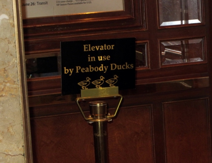 Heute dachte ich mir : Mach mal einen Zug durch die Stadt und schau mal was Memphis dir zu bieten hat. Zuerst aber wurde ich gestoppt vom „March of the Peabody Ducks“. Warum zum Henker liegt hier im Foyer ein roter Teppich und warum zum Henker sind hier so viele Leute ? Ich war mitten in die Vorbereitungen zur Entenparade geraten. Das Peabody Hotel bietet als DIE große Attraktion zweimal täglich eine Entenparade an. Es gibt Enten, die auf dem Dach des Hotels wohnen. Diese Enten werden jeden Tag um 11 Uhr mit dem Aufzug herunter in die Hotelhalle gefahren, watscheln dann über den roten Teppich zum Springbrunnen der mitten im Foyer steht und paddeln dann den ganzen Tag in diesem Springbrunnen herum.