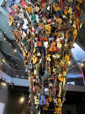 Anschließend bin ich dann ins EMP Museum gegangen. Hier gabs keine gezeiteten Tickets, hier konnte man kommen wann man wollte. Zuerst war das Zurechtfinden nicht so ganz einfach. Die Sonderausstellungen sind teilweise nur über Aufzüge nach unten zu erreichen. Es gab eine Ausstellung mit Science Fiction Film Requisiten. Helme aus Stargate, Modell aus 2001, Uniformen von Uhura und den Chefsessel von Kirk. Dann gabs noch ne Ausstellung mit Horrorfilmrequisiten. Wieder nach oben auf 0-Level gabs in nem kleinen Seitenteil noch ne Lego Ausstellung wo berühmte Türme (der Turm aus Dubai und Empire State Building ….) aus Lego gebaut waren. Hm. Ja. Das war jetzt auch nicht so der Brüller. Dachte das wäre mehr und größer. Der Rest vom Museum ist im Wesentlichen dann eine Ausstellung über Jimi Hendrix und dann eine über Kurt Kobain. Das war die erste Platte, das war der erste Auftritt, diese Gitarre hat Kurt gehört ….