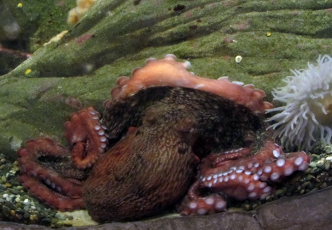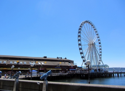 Hier an der Waterfront war auch wieder gut was los. Viele Geschäfte, (Seafood)Restaurants. Sehr viele Andenken-Klimbim-Nippes-Läden. Ich bin die Waterfront entlang am Riesenrad und den ganzen Piers bis runter zum Fährterminal gegangen. Da habe ich mal reingeschaut und ausgekundschaftet wie das mit den Fähren funktioniert. Ich hatte geplant morgen mal einen Abstecher aus der Stadt raus zu machen und der Plan sagte mir das die Fähren ziemlich oft (stündlich) unterwegs sind und auch mit der Orca Card zahlbar sind. Auf dem Weg zurück bin ich am Riesenrad ein Stück weiter gegangen und ins Aquarium rein. Die Broschüre machte einen schönen Eindruck. Eintritt 22 Dollar, stolzer Preis. Nun ja. Direkt hinter der Kasse ist ein riesiges Becken mit riesiger Scheibe vom Boden bis zur hohen Decke wo recht viele Fische unterwegs sind. Das ist jetzt auch eigentlich das einzige erwähnenswerte. Der Rest des Aquariums hat mich dann doch sehr enttäuscht. Es ist klein und die Becken sind nicht wirklich spektakulär. Man konzentriert sich auf die Welt im Pudget Sound und somit sind Tiere die ich im Aquarium sehen will wie Haie und Rochen und vielleicht noch bunte Korallenriff-Fische hier schonmal ausgeschlossen. Das Aquarium macht Werbung für den großen Riesenoctopus. Dieser hatte sich zu einem kleinem Schwabbelhaufen in die Ecke des Beckens zusammengekauert. Pech gehabt. Die Außenanlagen waren auch nicht wirklich toll. Zwei Robben und ein paar Otter. Die Otter waren zumindest lustig.