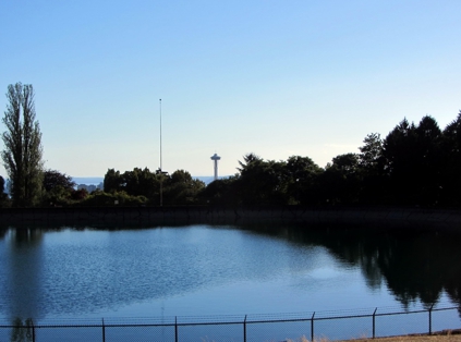 Am Broadway angekommen trifft man relativ direkt auf die Jimi Hendrix Statue. Der/die/das Broadway selbst war jetzt auch nicht oberspektakulär. Geschäfte, Lädchen, Fastfood, Banken, Häuser, Verwaltungen. Was man eben so in einer Stadt ein paar Meter vom Downtownhype entfernt so antrifft. Jetzt wars auch irgendwann egal. Ich bin einfach weiter marschiert und irgendwann dann am Volunteer Park angekommen. Jetzt qualmten aber endgültig die Socken und ich habe mich am Rand des großen Wasserreservoirs mit Blick auf die Needle zu einer längeren Rast niedergelassen. Der hohe Wasserturm steht noch ganz nett ins Grüne eingebaut zwischen hohen Bäumen. Allerdings konnte ich mich nicht mehr aufraffen die Stufen zu erklimmen. Ein Blick von Außen musste für jetzt und hier genügen. Das einzige was ich noch gerade so geschafft habe war noch das „Conservatory“ anzuschauen (schönes altes Gewächshaus) und einen Blick über den Lake View Cemetery zu werfen. Zum Grab von Bruce Lee hab ichs dann aber auch nicht mehr geschafft.