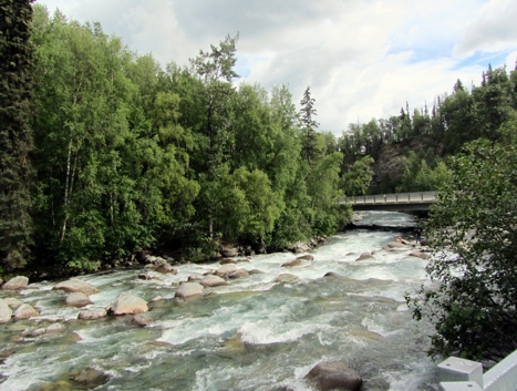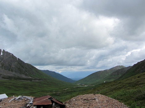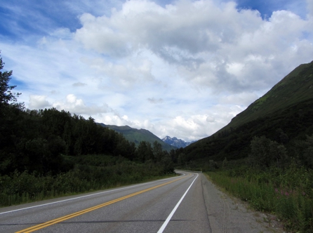 Lustig war, das ich jetzt an der Rezeption auch wieder Leute getroffen habe, die vorher in der Alamo Schlange vor mir waren. Hier oben ist die Welt recht klein scheint. Checkin war easy und das Zimmer war normaler Best Western Standard. Irgendwie wars ziemlich stickig, so dass ich erst mal die Klimaanlage (ja die hatten ne Klimaanlage mit Kühlen-Funktion) angeschmissen habe. Hätte ich auch nicht gedacht, das ich in Alaska erst mal die Air Condition anschmeiße. Das Wetter war nebenbei so dermaßen genial, das man draußen ohne weiteres mit dem TShirt rumlaufen konnte. So. Was tun ? Es ist 17 Uhr, mit baldiger Dunkelheit ist nicht zu rechnen. Verdammt beste Gelegenheit für den ersten Ausflug. Ziel war die Independence State Mine, grob gesagt Nord-Östlich von Anchorage. Auf diese verlassene Mine bin ich aus Zufall gestoßen und die Gegend sah recht interessant aus. Die Anfahrtsbeschreibung war denkbar einfach. Immer auf dem Glenn Highway Nummer 1 bleiben um beim Milemarker 89,irgendwas abbiegen in die Berge. Na das sollte doch funktionieren, zumal dieser Highway Nummer 1 (der in der Stadt allerdings noch Seward Highway heißt) ja direkt am Hotel vorbeigeht. Hach wie entspannt Autofahren doch sein kann. Breite Straßen, die schnurgerade irgendwo hin führen. Nicht viel Betrieb und die, die noch unterwegs sind, halten sich auch auch alle mehr oder weniger an die Verkehrsregeln. Fast war die Fahrt etwas langweilig.