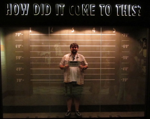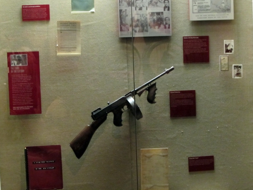 Das Mob Museum habe ich dann auch schnell gefunden. Ich hatte mich heute schon früher gewundert, das mir die Hitze heute garnicht so viel ausmachte. Jetzt nach dem Weg die Straße runter zum Boneyard und zurück war ich dann aber doch ganz froh, beim Museum wieder in einem klimatisierten Gebäude zu sein. Erst mal wieder Körpertemperatur auf Normalwerte senken. Das Mob Museum beschäftigt sich grob erzählt mit dem organisierten Verbrechen von der Zeit so ca. ab Alkoholschmuggel zur Prohibitionszeit bis zur Übernahme der Las Vegas Casinos durch die Mafia. Neuere Entwicklungen werden eher kurz behandelt. Ich fand die Ausstellung alleine schon deshalb sehr interessant, weil der Gang durch die „Hall of Fame“ der Verbrecher so ziemlich die komplette Welt der genialen Fernsehserie „Boardwalk Empire“ nachzeichnete. So ziemlich jeder Name kam bekannt vor und das eine oder andere „Aha, den gabs wirklich!“ ist mir dann doch entfleucht.