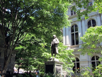 Los geht der Freedom Trail beim Boston Common Park. Vom Hotel aus wars jetzt nicht allzu weit dahin. Dabei bin ich noch durch ein paar kleine Sträßchen gelaufen. Hier habe ich doch glatt neben vielen Nagelstudios nen Laden gesehen, der nichts als Baseball-Sammelkarten verkauft. Dachte garnicht das es sowas noch gibt in der heutigen Zeit. Ich hatte mir eine Freedom-Trail-App aufs Handy geladen. Diese App blendete GPS unterstützt immer den richtigen Text zum Wegpunkt ein wenn man unterwegs war. Das fand ich jetzt echt gut. Eine Karte braucht man für diesen Trail eigentlich auch nicht. Im Bürgersteig ist eine rote Linie eingelassen. Sozusagen der rote Faden. Wenn man immer brav dieser Linie folgt, hat man 100% des Freedom Trail abmarschiert.