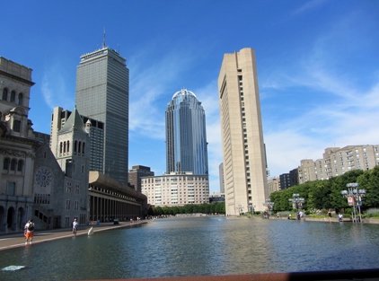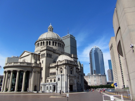Worauf ich jetzt auch absolute keine Lust hatte, war den Weg vom Schiff über die Brücke bis zur anderen Seite des Flusses wieder zurückzulatschen. Meine Kartenapp hat mir dann verraten, das es auch hier auf dieser Seite noch eine Bahnstation gibt. Station Community College. Ich bin also dorthin. Das war zwar auch nicht eben um die Ecke und man musste todesmutig wieder diverse mehrspurige Straßen überqueren, aber am Ende saß ich dann doch in der Bahn. Puh. Endlich mal ne Pause. Irgendwie bin ich dann später gefühlt am anderen Ende der Stadt bei der Station „Symphony“ wieder ans Tageslicht gekommen. Wo man fast als erstes draufzuläuft hier ist die massive Kirche „The First Church of Christ Scientist“. Großer Kasten. Nicht unschön. Relativ direkt daneben ist ein langer „Reflecting Pool“ wo recht viele Leute mit funkferngesteuerten Modellböötchen am fahren waren. Der Pool läuft eigentlich direkt auf den Riesenkomplex „Prudential Center“ zu. Hier auf das Hochhaus kann man auch hoch. Die haben ein sog. „Skywalk Obervatory“. Auf den höheren John Hancock Tower kommt man seit einer längeren Zeit nicht mehr hoch. Da musste ich hier mit dem Prudential nehmen was ich kriegen konnte.
