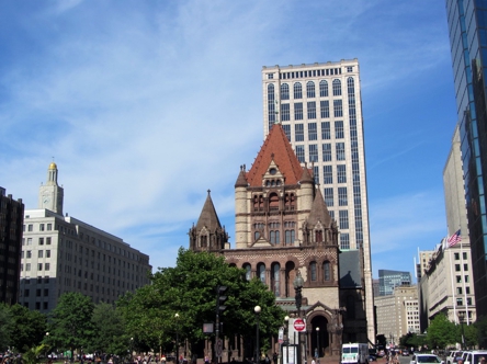 Draußen einmal über den Copley Square drüber ist die Trinity Church. Das Gebäude sieht echt mal klasse aus. Fast so wie ne kleine Ritterburg hätte ich spontan gesagt. Ich bin nicht drinnen gewesen. Ich hatte gesehen das um die Ecke die Boylston Street ist. Und praktischerweise war hier direkt 500 Boylston. Das wird vielen jetzt nichts sagen. Diejenigen die die Serie Boston Legal gesehen haben, denen müsste 500 Boylston allerdings was sagen. Das Haus mit den massiven Bögen davor wird in der Serie oft gezeigt und sollte das Gebäude sein, wo die fiktive Kanzlei von Crane, Pool und Schmidt ist. Das musste ich einfach ablichten. Nachdem ich jetzt so noch ein wenig Denny Crane Memorabilia gesammelt hatte, habe ich mich die Boylston hoch schnurstracks zum Boston Common hoch begeben und quer durch in Richtung Hotel.
