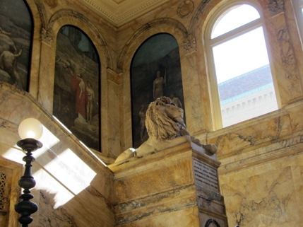 Allerdings wurde mir beim Ticketschalter mitgeteilt, dass das Observation Deck heute wegen einer privaten Feier halb gesperrt wäre. Interessant was man so alles für ne Feier mieten kann. Da ich nun, wenn ich schon mal hochgehe, auch den ganzen Umblick haben wollte, bin ich wieder abgezogen. Folgt man von hier der lauten Hauptstraße in Richtung des Hancock Towers steht man kurz drauf an der Public Library. Dort bin ich auch noch rein. Das Treppenhaus mit den beiden riesigen Löwen war echt beeindruckend. Der Große Lesesaal war jetzt eher Standardausstattung. Viele weitere Räume habe ich mir nicht angeschaut.